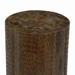 - This rounded stool with a unique snakeskin-like pattern is made of natural teak wood