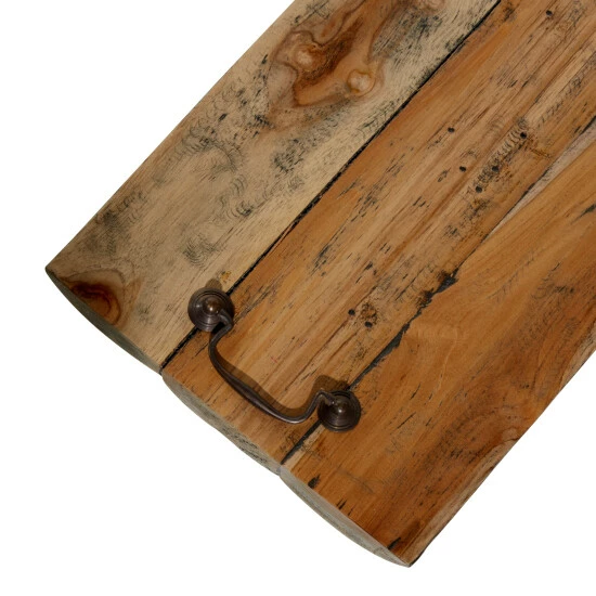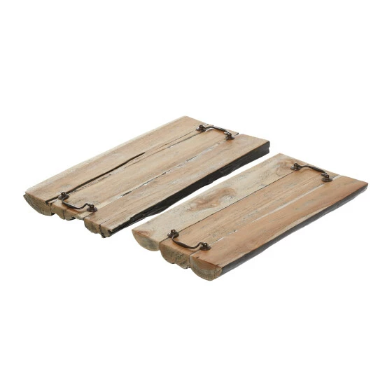These brown wood board trays with iron handles have that warm and fresh vibe for your rustic-themed home. Each rectangular tray is innovatively made with three affixed board wood panels that flaunts natural brown finish and 2 hinged handles. Use as individual or set of decor holders or serving trays on your coffee, console, and kitchen tables, these decorative wooden trays sure are out-of-the-ordinary additions to your rustic home spaces. Please note that this item is for decorative purpose use only and are not food safe. This item ships in one carton