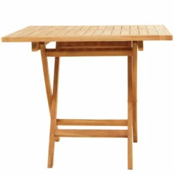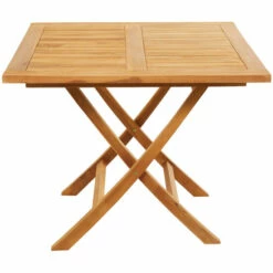 - Traditional style teak folding table features folding leg stand built in a seamless profile with slatted design and x frame structure for durable form