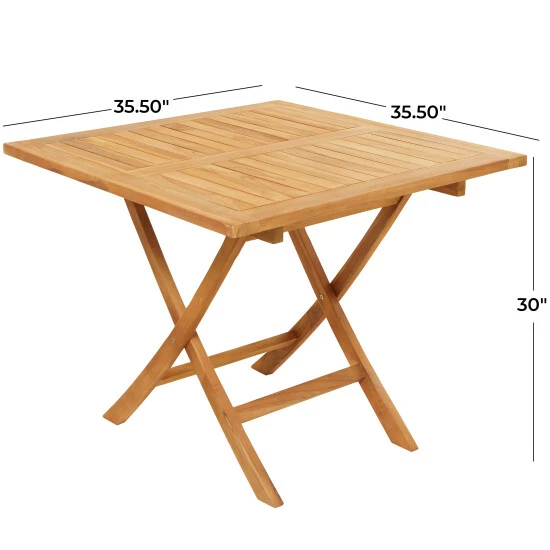 Create a welcoming and comfortable entertaining space in your outdoor or indoor area. Make your outdoor patio your perfect getaway with this sleek and spacious table. Update your outdoor bar or dining area with this brown teak table with other wooden furniture for a classic inspired look. This item ships in 1 carton. Suitable for indoor and outdoor use. Brown teak outdoor table has 100 lbs weight limit. Made in Indonesia. Clean with soap and water; use clear teak oil with strong UV protection to ensure longevity. Patio dining table can accommodate up to 4 chairs. Traditional style. Teak wood naturally retains its oil, making it water-resistant and durable for long term use.