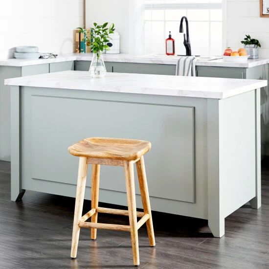 A brown contemporary wooden stool that is a perfect option for anyone who is in need of functionality and utility. Make memories and laughter in the kitchen as you sit pretty in this stylish bar stool. Find comfort in our counter stool featuring eye catching design and durable structure. Designed with rubber stoppers at the base that prevent scratching furniture and table tops, as well as sliding around. Suitable for indoor use only. Max weight limit is 250 lbs. Made in India. Contemporary theme.