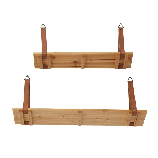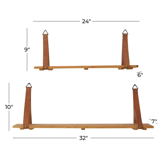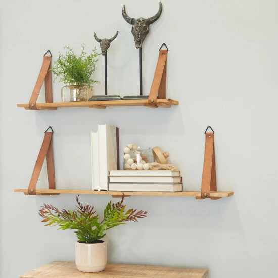 - Fir wood, leather, and metal give these wall shelves sturdy and durable forms