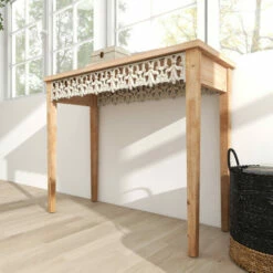 - This exquisite wooden console table is made of sturdy China Fir and MDF wood materials
