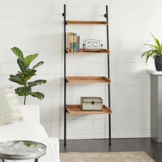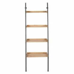 If you’re looking for a space-saving yet stylish way to show off books and decor, this unique ladder shelf makes a great addition to any room of the house! Four red pine tray shelves with open fronts beautifully display books, shelf decor, and plants, secured by wall mounts that keep your shelf steady. Use in your larger bathroom as a towel and linen rack. The natural blonde-colored wood adds an earthy feel while working with any color or style palette, especially farmhouse and minimalist spaces.
