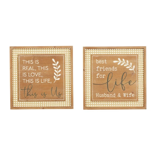 Transform your modern and contemporary living spaces with the addition of this stunning white alum vase! . Appreciate their design best against solid-colored backgrounds in farmhouse settings. They make great unique decor above mantle, console table or in any living space wall. This item comes shipped in one carton. Come with metal saw backing for easy hang. Suitable for indoor use only. This set include 2 wood wall decor pieces. “This is real, this is love, this is life, this is us”, “Best friends for life, husband & wife”. Farmhouse-themed style.
