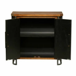 With its stunning metallic characteristic, this cabinet is best to display in the entryway, living room, or home office of an industrial-themed home. A practical yet stylish upgrade that instantly elevate the look of your room. Maintain a clutter free zone and stay organize with this chic cabinet. This industrial accent cabinet features interior space with 28.25″L x 13.25″W x 24.50″H measurements. Suitable for indoor use only. Maximum weight limit is 100 lbs., each shelf can hold up to 30 lbs. This accent furniture features 2 inner shelves with 0.43″ and 1.25″ thickness and 30 lbs. capacity. Designed with an industrial theme.