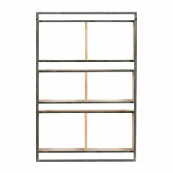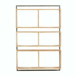 Showcase your minimalist organization skills with this contemporary style brown wood and black metal wall shelf. This unique wall shelf features three brown wooden rectangular shelves divided into two equal partitions by a vertical wood slat which makes the total number of shelves into 6. The shelves are securely attached to large black metal rectangular frame to support the entire structure and for your peace of mind when displaying. This piece will complement the clean and minimalist aesthetic of your contemporary or modern home. This item comes shipped in one carton. Easily hanging using hanging hardware on the back. Suitable for indoor use only. Holds up to 20 lbs. This wall shelf features 6 wooden grids and an inner height of 35.4″, inner length of 23.6″, inner width of 5.7″. Designed with an industrial theme.
