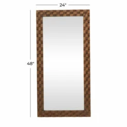 - Natural wood brown finish highlights the reflective property of this wall mirror
