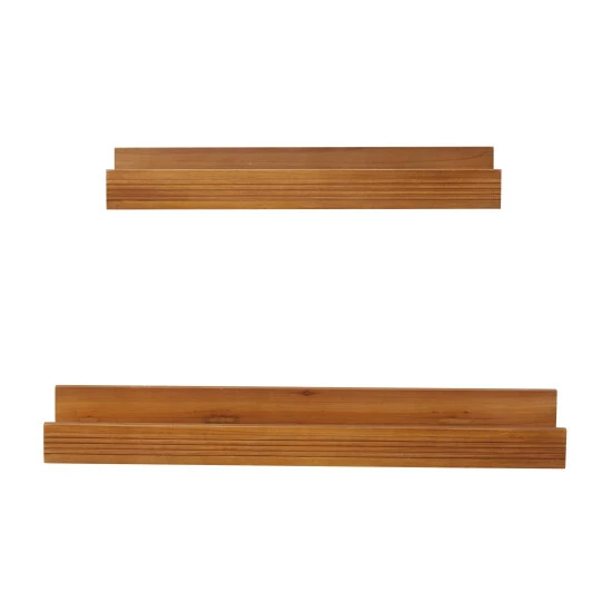 - Natural wood brown finish highlights this set of 2 wall shelves