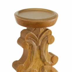 These taper candle holders from India are the finishing touches you are looking for in natural and traditional interiors. They come with a mango tree wood-made exterior and are made decorative by the addition of intricate carvings, iron, and brass. Use them as dim light holders in the dining area or as centerpieces on top of dressers and side tables. These candleholders come as a set of two and stand 15″ and 19″, respectively.
