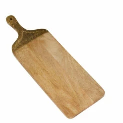 - Long mango wood surface with brass handle