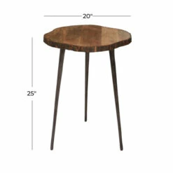 - This small wooden accent table showcases a sturdy construction of mango tree wood and aluminum