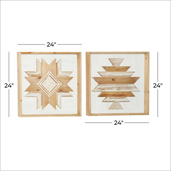 Fill that blank space above your couch with stunning carved wood wall art. This set of panels features geometric patterns that can complement a rustic living room, bedroom, or home office. A combination of light, earthy tones lend the panels a soft, calming look. And the shapes and textures will always catch your eye. Each panel is constructed with a combination of Chinese fir wood and MDF. These items hang via triangle ring hardware. Suitable for indoor use only. This is a 2-in-1 set of wooden abstract wall decorations. This item comes shipped in one carton. Due to the handmade nature of this item, no two will be alike, there will be slight differences in shape, size, and color.