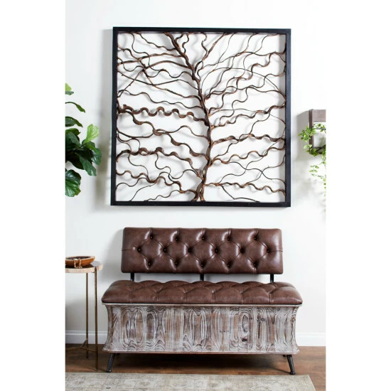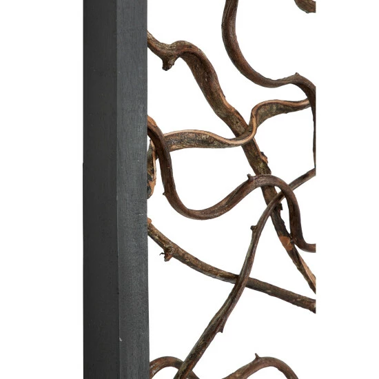 One of a kind, stunning natural art, this large wood wall decor piece is handmade from wood, comprised of a black-painted teak wood frame housing natural, unscathed wavy and spiral-shaped Bauhinia twigs and branches to form this tree art. Stunning against a solid-colored wall in a natural or rustic decor space, this large square driftwood decor fills your wall with fluid, natural movement and texture. The earthy hues of dark brown, gold, beige, and caramel throughout the deeply textured, twisting branches bring a warm, grounded vibe into any space craving a natural essence. Easy and ready to hang from the 2″ frame’s hardware. Suitable for indoor use only. This item comes shipped in one carton.
