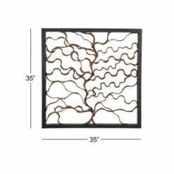 One of a kind, stunning natural art, this large wood wall decor piece is handmade from wood, comprised of a black-painted teak wood frame housing natural, unscathed wavy and spiral-shaped Bauhinia twigs and branches to form this tree art. Stunning against a solid-colored wall in a natural or rustic decor space, this large square driftwood decor fills your wall with fluid, natural movement and texture. The earthy hues of dark brown, gold, beige, and caramel throughout the deeply textured, twisting branches bring a warm, grounded vibe into any space craving a natural essence. Easy and ready to hang from the 2″ frame’s hardware. Suitable for indoor use only. This item comes shipped in one carton.