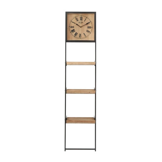Organize your room with this leaning ladder towel shelf that sports an analog clock for that traditional vibe. Utilize your wall space to add more storage for a space saving solution in any compact area. Whether used as a focal point, or to display your favorite things, this wall shelf it the perfect addition to any home. Runs on one AA battery. Shipped in one carton. Features Roman numerals for hour markers. The clock mechanism runs silent. Suitable for indoor use only. Comes with 3 wooden shelves. Feature typography ‘Est 1863 OLD TOW CLOCKS’. Traditional design. Holds up to 20 pounds. Includes hanging hardware for easy hanging.
