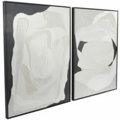 - Set of canvas art wall decors featuring black frames with textured black and white abstract details