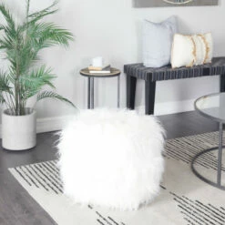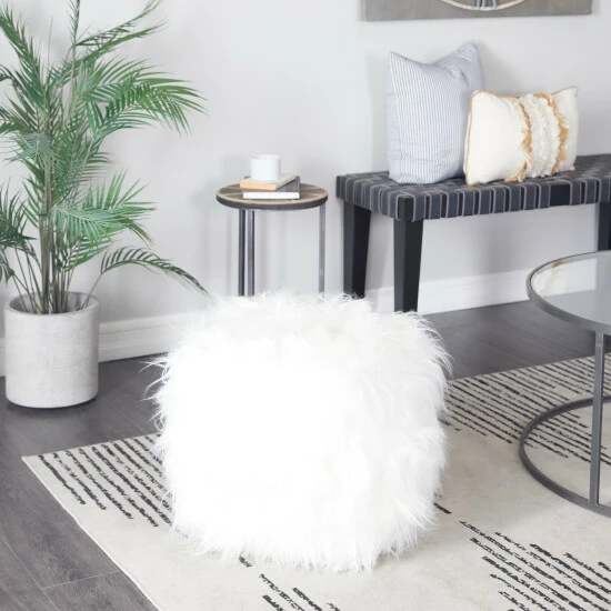 - This pouf ottoman features shaggy faux felt for a natural and chic appeal