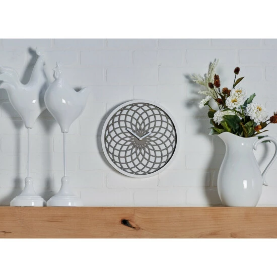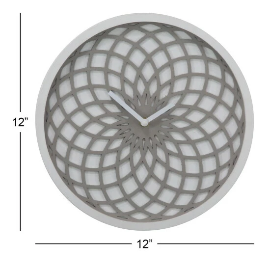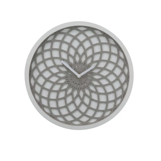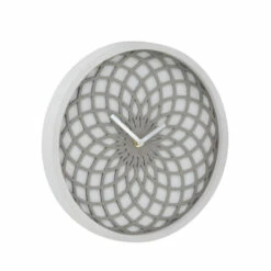Give your home a touch of modern elegance with this beautiful wall clock. An alluring lattice pattern radiates from the center, creating a visually intriguing display in subtle, contemporary shades of white and grey.