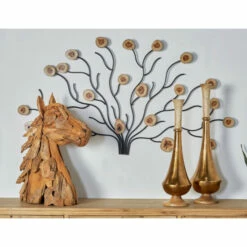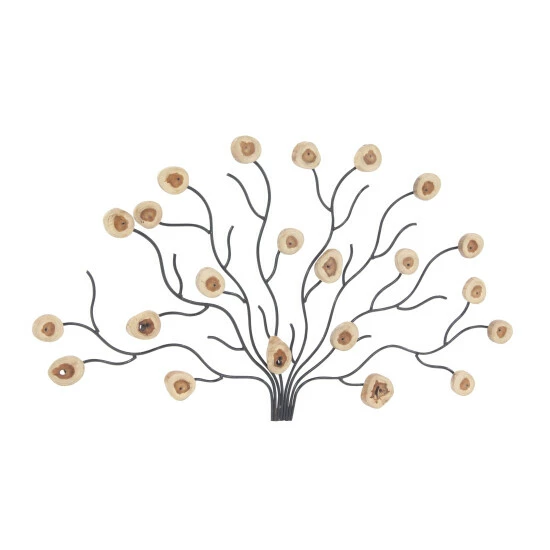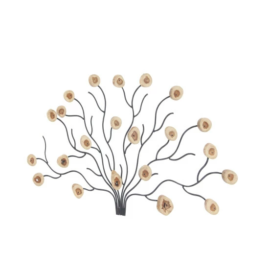 Add a stunning accent to your walls with this tree wall decor from Studio 350. It features black-finished iron branches designed with brown-and-beige-finished symmetrical open fruits that are made from teak wood. This easy to hang wall decoration brings elegant and natural vibe to any space it occupies. Hang this in your living room or bedroom walls and make your bare walls a wall of art. Get this striking piece of art today!