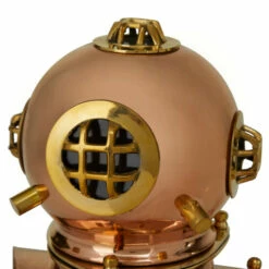 - A decorative diving helmet crafted of solid and shiny copper and brass materials
