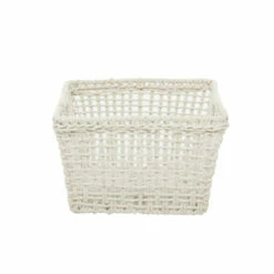 - Intricate rope grid weave is showcased in this large storage basket with 2 cut out side handles for easy carry