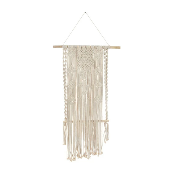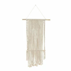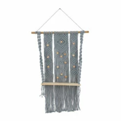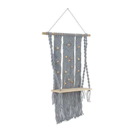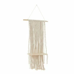 Give your wall a charming appeal with this macrame inspired shelf and display your precious crystals and small LED candles. Maintain an organized home to create comfort and a welcoming atmosphere. Utilize your wall space to add more storage for a space saving solution in any compact area. This item comes shipped in one carton. Wall shelf comes with a hanging string at the top for easy hanging via nail or screw. Suitable for indoor use. Made in India. Bohemian style. Maximum weight limit is 10 lbs. Furnished with 1 wooden shelf.
