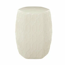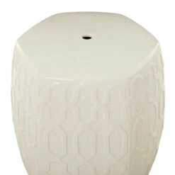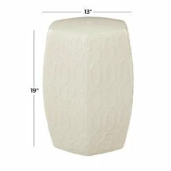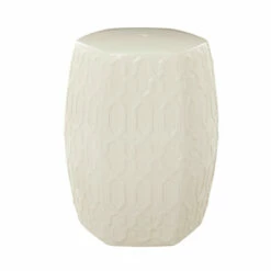 Give your home the perfect finishing touch with this stylish hexagonal end table that also serves as a stool. A compact friendly table providing you with additional storage space any where in your home. Useful and elegant, side tables are more than just a place to throw your mail or place a lamp. This item comes shipped in one carton. Suitable for indoor use only. Contemporary Setting. Maximum weight limit is 250 lbs.. A contemporaryย style offers neutral elements and basics form with a bold design. A contemporary accent table crafted of robust and long-lasting ceramic material. A contemporary accent table that comes in a cream finish that complements other decors in your space. This decorative side table features a hexagonal body designed with textured hexagonal cut diamond pattern. This item measures 13″L x 14″W x 19″H and weighs 19 lbs