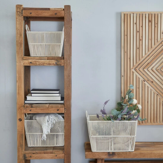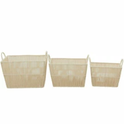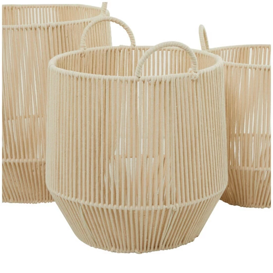 Keep your space tidy and neat with the help of these storage baskets. Filled with shoes, books, blankets and more, these storage baskets are a stylish way to store your stuff. Easily arrange these natural storage baskets beside your sofa as chic storage for blankets and throws for a more organized home. This item ships in 1 carton. Due to the handmade nature of these baskets, there will be slight color, shape, and size variations, as well as loose fibers. Suitable for indoor use only. Storage baskets come as a set of 3. Natural style.