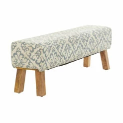 - A decorative bench for home crafted of robust mango wood and fabric materials