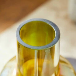 - Waterproof smoked green and yellow glass vase with a 3″ mouth opening