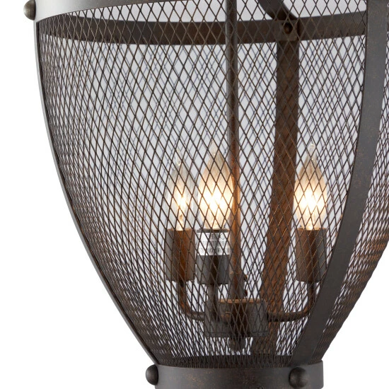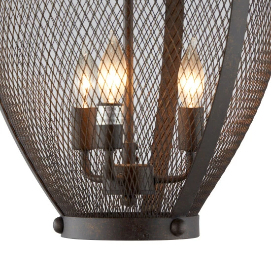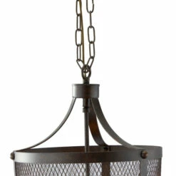 Illuminate your entire space with this eye-catching chandelier. Maximize your ceiling space to add depth and dimensions in your home.This iron chandelier can accentuate rustic, vintage, and industrial living spaces. Requires 3 candelabra bulbs, not included. This item comes shipped in 1 carton. The chain is 59.25 in. long. Loop hardware at the top section allows for easy hanging via a nail or screw. Suitable for indoor use. Some assembly is required. This chandelier features a tapered mesh shade made of metal. Comes with an on/off switch. Vintage-inspired.