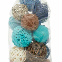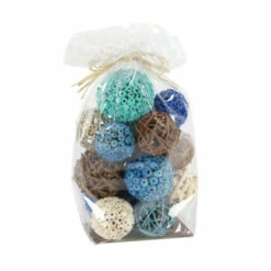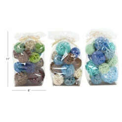 Decorate with these dried deco bags to add colorful vibes in your coastal style inspired home in bowls in the living room, trays in the kitchen or on transparent vases in your home office. Add color and textured to any vase or decorative bowls with these fillers to enhance your living space. Make a statement with this unique decor on mantle, console table or in any living space. This item comes shipped in one carton. Due to the handmade nature of this item, no two will be alike, there will be slight differences in shape, size, and color. Suitable for indoor use only. Made in India. Each set comes with 3 bags of dried decorative pieces. Coastal theme.