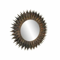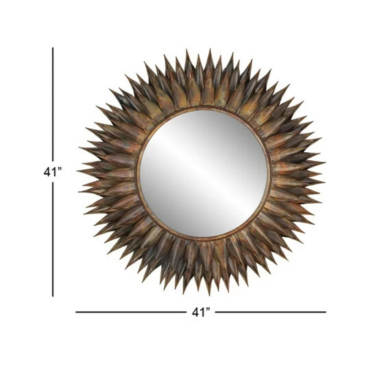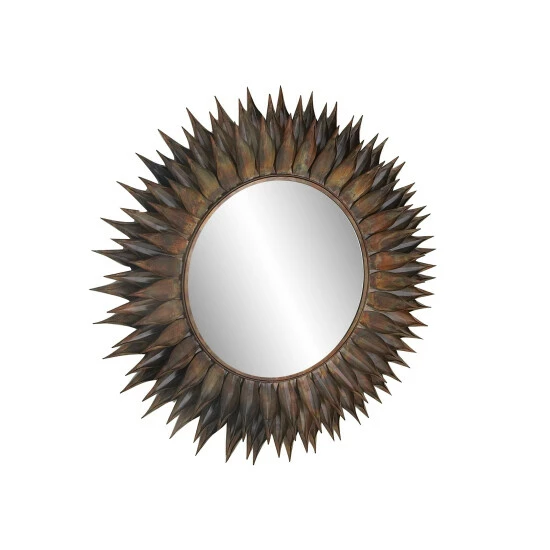 With a character to spare, this stunning wall mirror from Studio 350 makes a great addition to eclectic-themed houses or offices. It features a round-shaped mirror over a wooden backboard, enclosed in a layered, spiky frame made of iron. Its bronze finishing renders a trendy fashion that adds a unique look to your space. Get this one-of-a-kind wall mirror today at a price that will surely suit your budget!