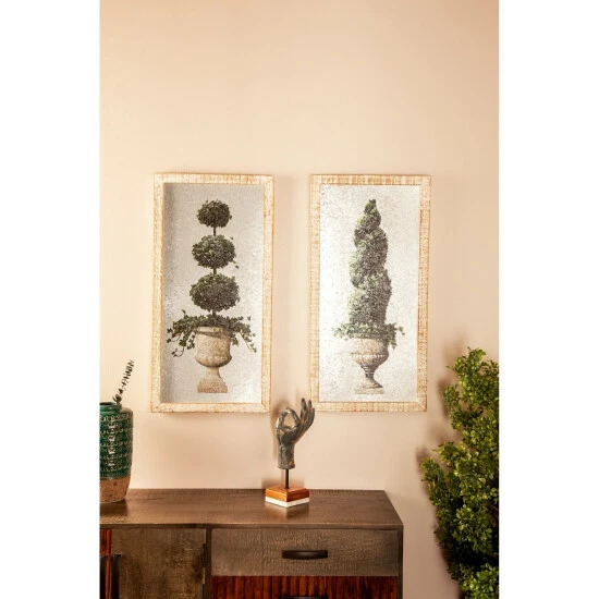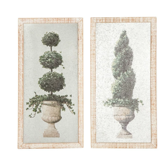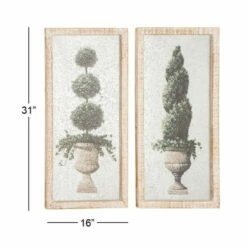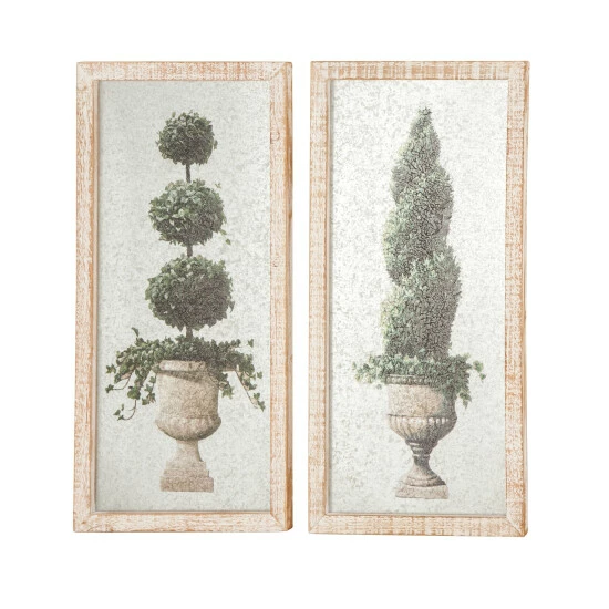 Captivate your guests by placing this wall art decor in the hallway or in the living room. This set consists of two rectangular wall art decor that is crafted from MDF, Fir wood, and iron materials that guarantees a long-lasting use. It features two galvanized distressed white-finish wall art designed with nature-inspired details that makes it blends well with farmhouse-themed settings. It is easy and safe to hang on most wall types, so you won’t have a hard time installing it. This wall art set can be used both indoors or outdoors. Get this home decor today for an added style at a low cost!