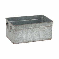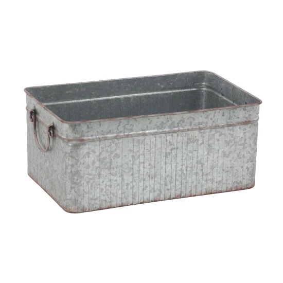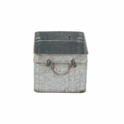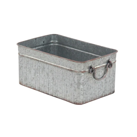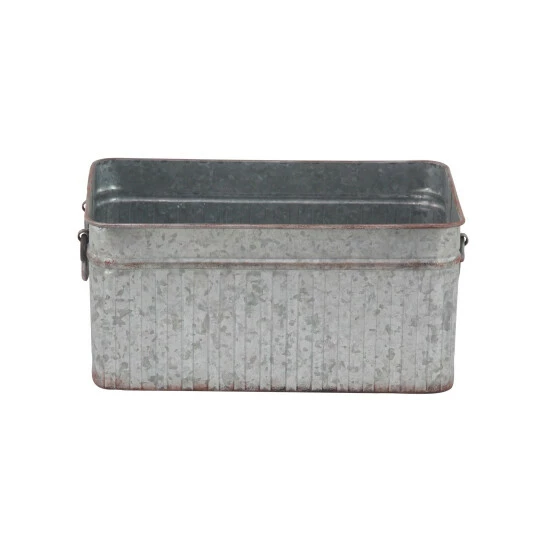 Incorporate an industrial-inspired vibe to your plant or floral arrangements with these metal planters from Studio 350. Each item in this three-piece set features a rectangular body with vertical ribbing details, a wide opening, and a spacious interior that can hold a variety of potted plants and floral display, creating a beautiful ensemble for your home or garden. Two arched side handles provide added convenience and ease of use to these planters. A galvanized gray finish with rust highlights complete the planters’ rugged look perfect for farmhouse-themed settings.
