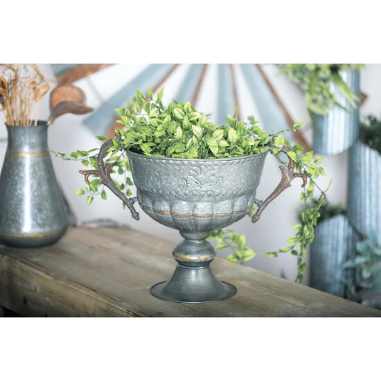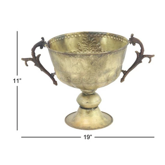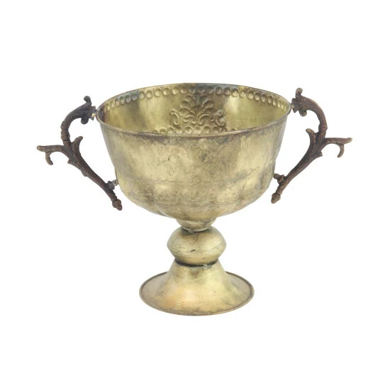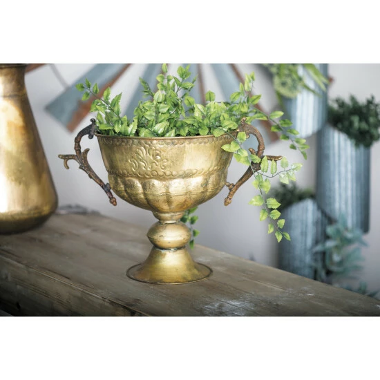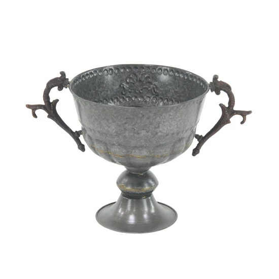 Add personality to your garden and patio with this trophy cup planter. Crafted from 100% iron, this planter features a round body with embossed floral design. It is designed with botanical scrollwork-inspired handles that provides convenience on moving and holding the planter. it is also designed with a tapered round base for a stable foundation. Get this piece now for a price that you can surely afford!