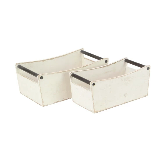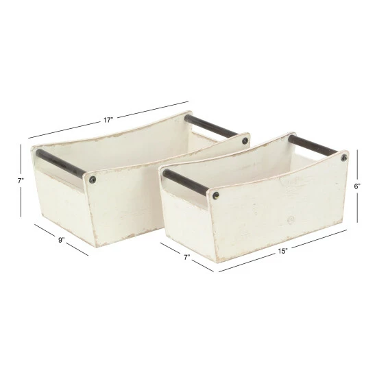 This set of 2 storage crates from Studio 350 features deep and wide settings perfect for stowing away reading materials and other small household paraphernalia. Each piece is crafted with tubular side handles, making it easy to transfer items from room to room. The distressed white finish of the crates is beautifully accented with a rough black hue, creating a charming timeworn look that suits shabby chic and farmhouse-themed settings.