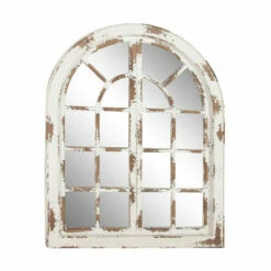 Add some style to your entryway, lobby, living room, or bedroom with this striking wooden wall mirror. This accent piece features a clear reflective glass mirror designed with an arched-shaped gray wooden frame and exposed brown highlights. With its impressive look, this stunning mirror suits any home with a farmhouse interior. Apart from decorating your home, the purpose of this mirror is to bounce back outdoor light to a small room to make it look bigger. Pair this decorative wall mirror with house plants or other wall decor accent pieces to blend everything together perfectly. Easy and ready to hang via hardware at the back. Suitable for indoor use only. This item comes shipped in one carton.