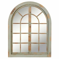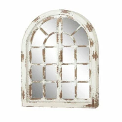 - This window panel wall decor is made of iron, glass mirror, and wood materials