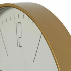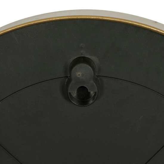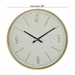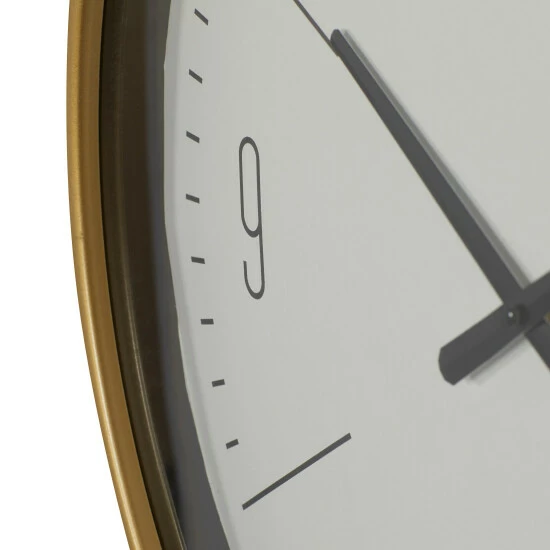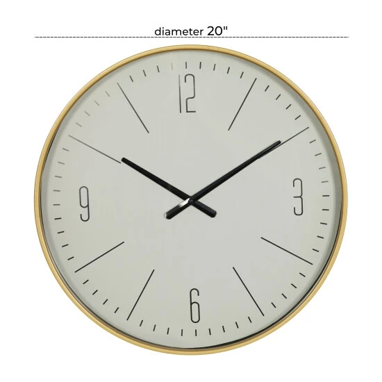 Time is a universal constant which you do not have control of. However, this vintage style white and gold/black round metal wall clock can bring time to a standstill when you admire it in your beautiful traditional inspired home. This unique piece features a round design with a slim and elegant gold/black finish metal border frame. The hour and minute hands are in a black finish together with the hour and minute markers. The hour markers only show 3, 6, 9, and 12 in Arabic numerals while the rest are in line bars. This elegant clock would definitely make an excellent focal point for your walls paired with some accent tables, and other decors of the same genre in your traditional inspired living space. 1 AA battery required (not included). This item ships in one carton. Features Arabic numerals for 12, 3, 6, 9 markers with minutes. The clock mechanism runs silent. Metal secure loop backing for easy hang. Suitable for indoor use only. Contemporary design.