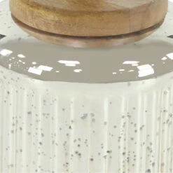 - These jars feature a cylindrical body with distressed vertical grooves and a round wooden lid