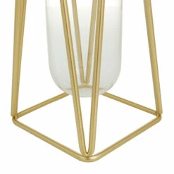 The unique and bold design of this set of vases makes it an instant conversation piece and a gorgeous accent decor for your home. Accessorize your space effortlessly by displaying a beautiful floral arrangement with this decorative vase that’s best to arrange with other home decors. Create depth and form onto your space by displaying this beautifully crafted vase. This item comes shipped in one carton. Each cylindrical glass vase is securely mounted on welded metal frame. Suitable for indoor use only. This set comes with 2 eye-catching vases. Modern Theme. This set of decorative vases has small round mouth openings.