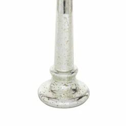 - A set of silver or green glass candle holders measuring 5.7″D x 19.35″H, 4.7″D x 15.85″H, 4.45″D x 12.3″H; collectively weighs 4.65 lbs