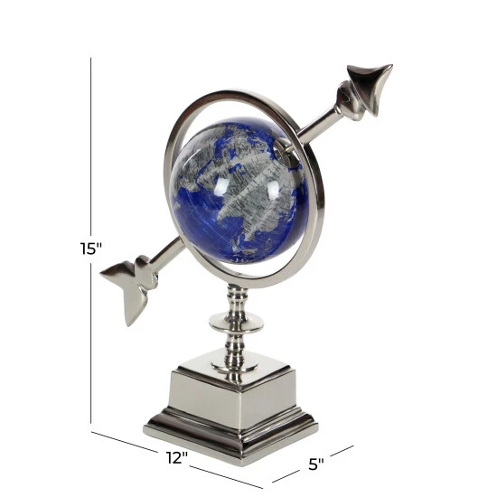 - A decorative globe with stand crafted of sturdy and polished stoneware, aluminum, and glass materials