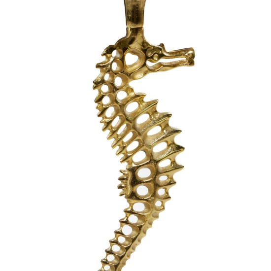 - This captivating seahorse-inspired accent table is crafted in India and made of shiny aluminum along with solid marble