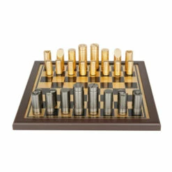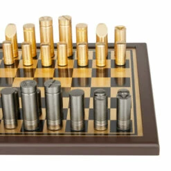 - A combination of aluminum and mango wood is used to construct the detailed form of this chess board game set