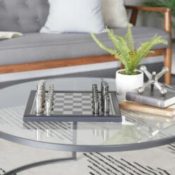 Showoff your competitive side and keep your guest entertain with this game set. A sleek and sophisticated display with a playful touch. Enjoy a game of chess or add an engaging display in your home space with this contemporary-themed game set. This item ships in 1 carton. Aluminum game set makes a great gift for any occasion. Suitable for indoor use only. Made in India. Contemporary design.
