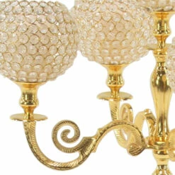 Delight your guests and make any occasion extra special by adding a lighted or flameless candle to this hurricane lamp centerpiece. Made with a sturdy base, it is perfect for creating an elegant atmosphere at your table top or mantel. Display as accent or centerpiece dรฉcor on your console, coffee, or dining table. Candelabra candle holder which can hold 5 small tea light candle. This item ships in 1 carton. Suitable for indoor use only. Made in India. Glam Design.