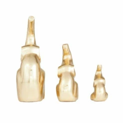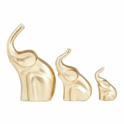 - Set of 3 elephant sculptures comes in a smooth gold finish that provides a glam-inspired look